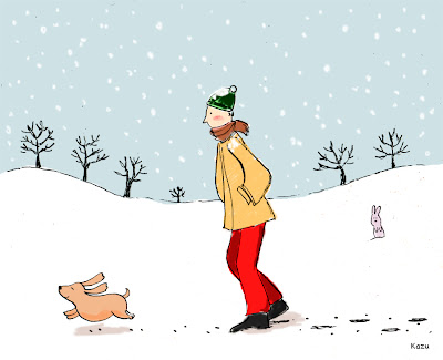I love to see a happy dog jumping in the snow! Japanese children's song "Snow" says "dog enjoys snow in the garden, but cat stays at a warm place in a house"... maybe it's true!